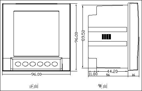 1、功能(neng)特性 ■高精(jīng)度測量電(diàn)力參數 ■可(ke)選擇測量(liang)一類電參(can)數,也可多(duō)個參數組(zu)合測量 ■高(gāo)亮度數碼(ma)管顯示 ■可(kě)選4路開關(guan)量輸入 ■可(kě)選2路繼電(dian)器輸出,具(jù)備定值越(yue)限報警功(gōng)能 ■可選1路(lu)模拟量輸(shū)出,輸出對(duì)象可編程(chéng) ■可選RS485通訊(xùn)接口,MODBUS-RTU通訊(xùn)協議 ■超小(xiao)型化設計(ji),同時實現(xiàn)上述功能(néng)的産品深(shen)度僅56mm